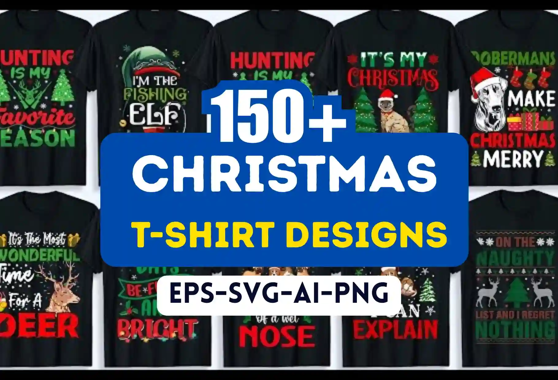 150+ Christmas T-Shirt Design Bundle – Ready-to-Upload POD Graphics for Merch Sellers