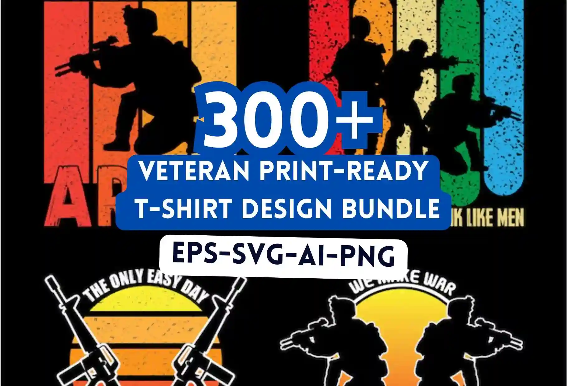300+ Veteran Print-Ready T-Shirt Design Bundle – Patriotic Military Apparel Graphics for Army, Navy & More