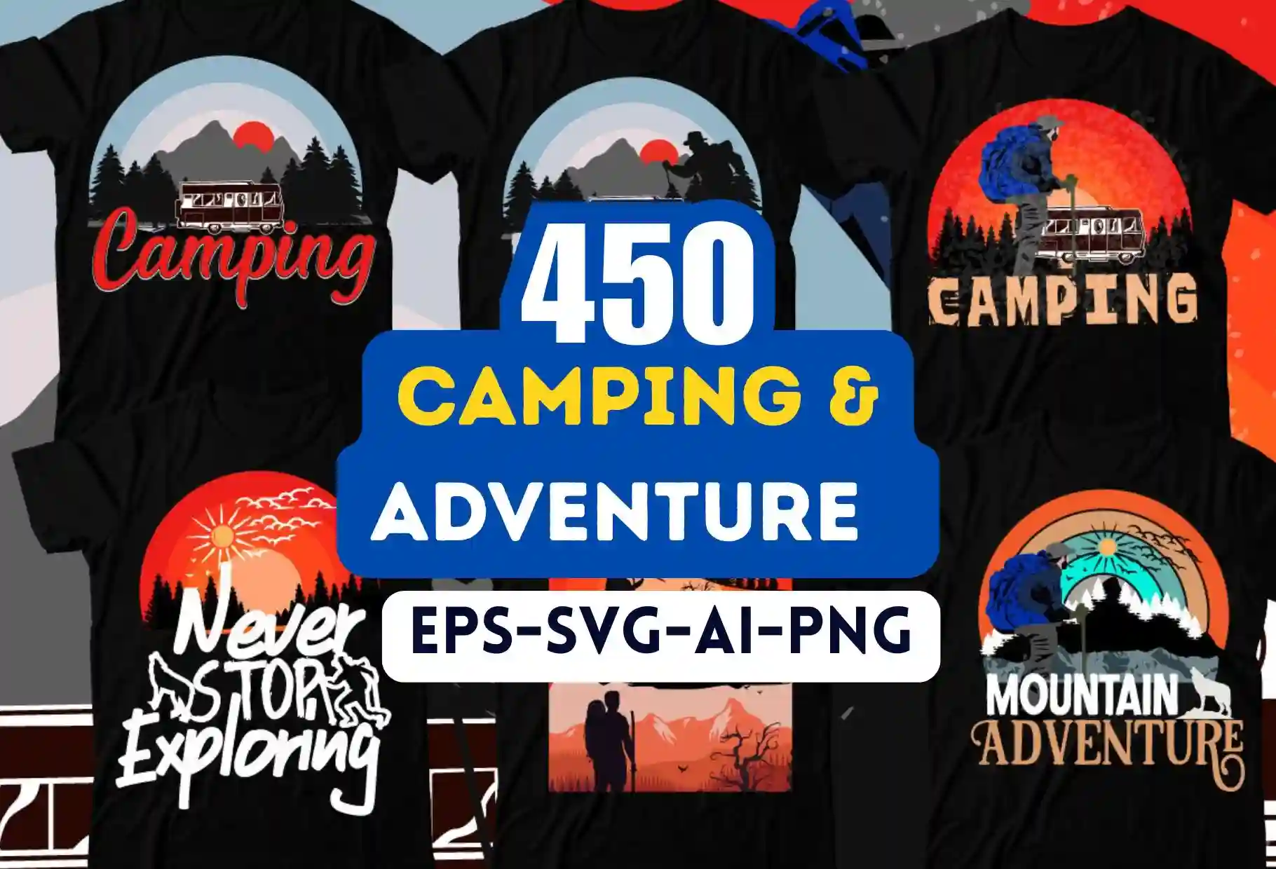 450+ Camping & Adventure Themed T-Shirt Design Bundle – Fully Customizable & Editable Graphics