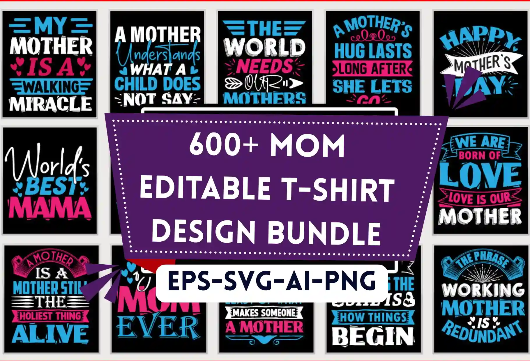600+ Editable Mom Design Bundle – Customizable SVG, PNG, PSD Files for T-Shirts, Mugs, Posters & More
