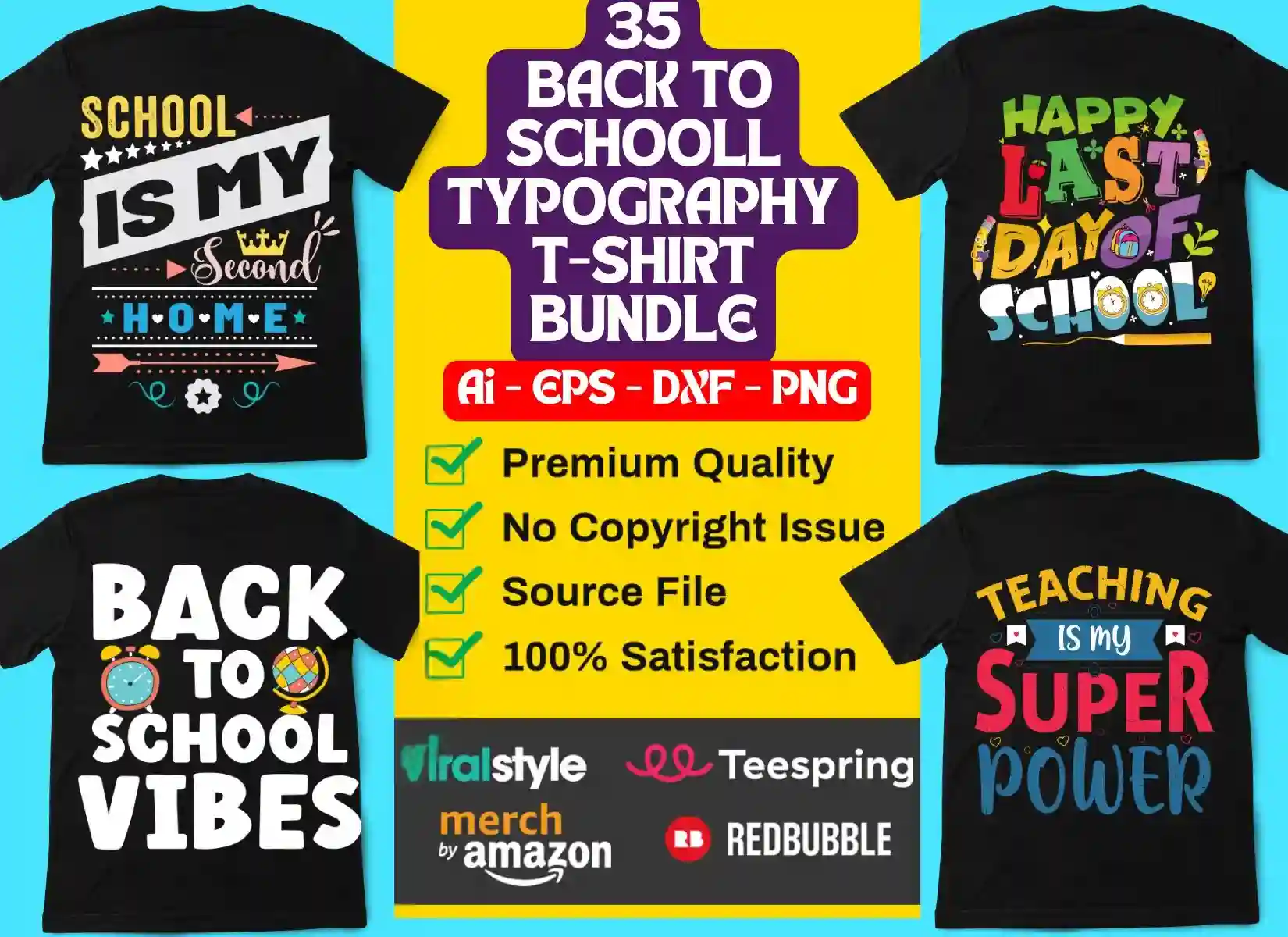35 Back To Schooll Typography T-Shirt Bundle