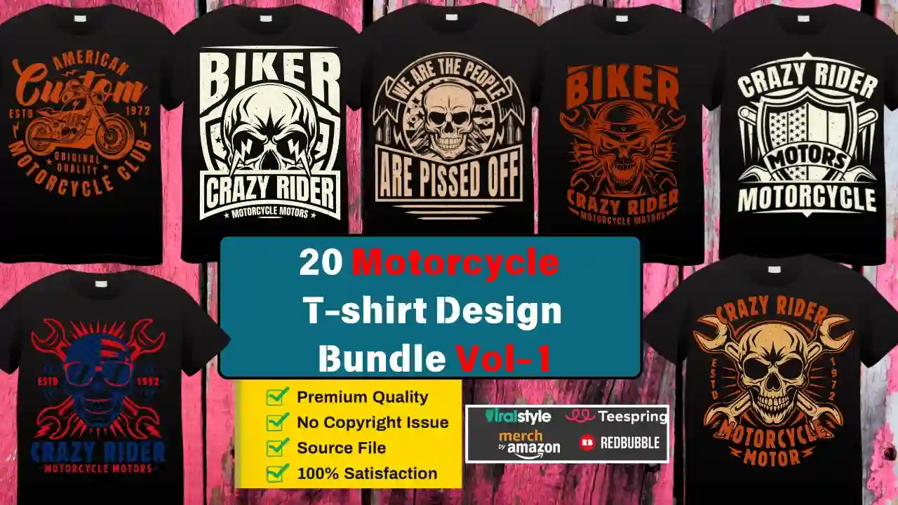 20 Biker T-shirt Design Bundle-Vol-1