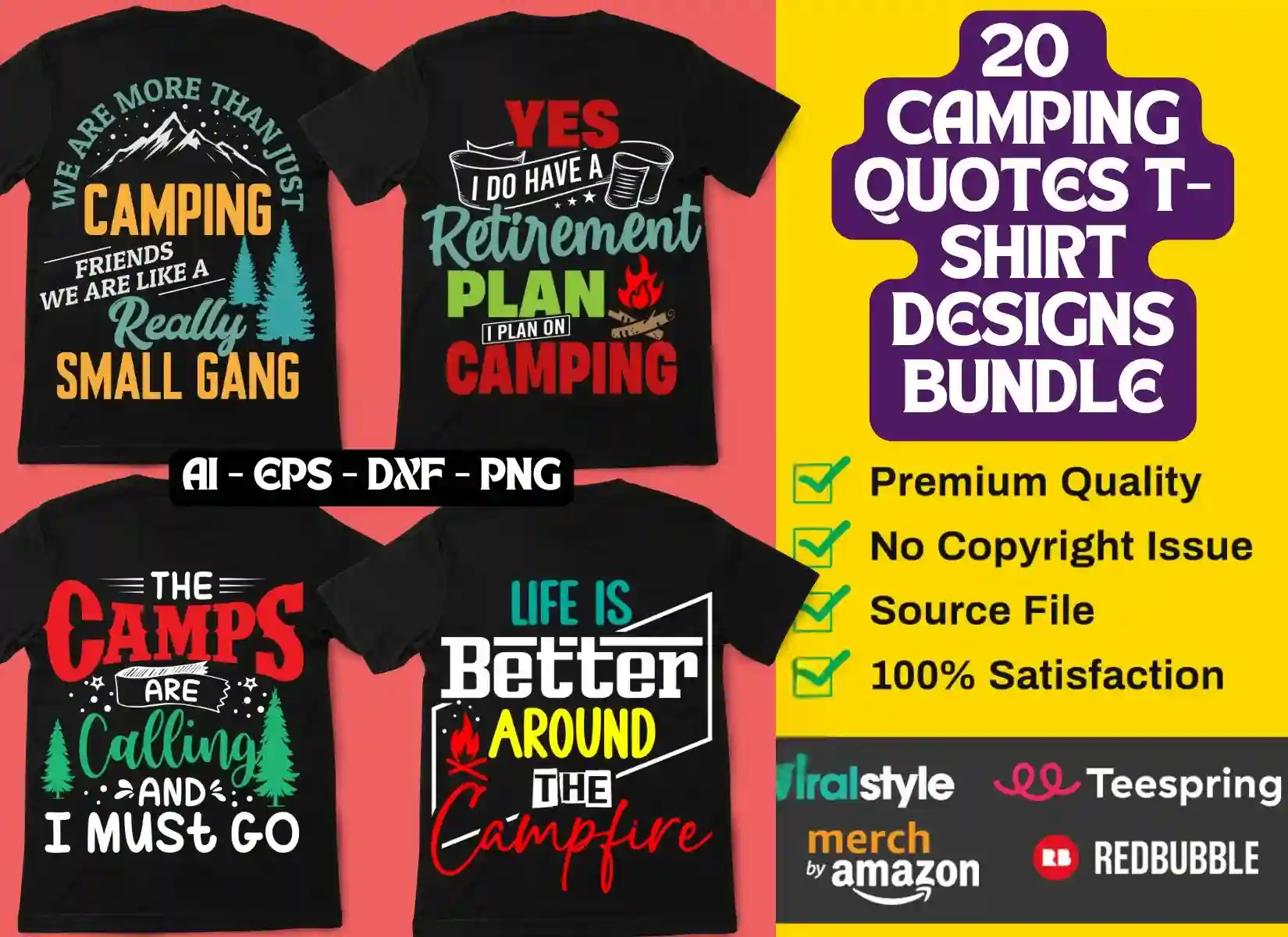 20 Camping Quotes T-Shirt Designs Bundle
