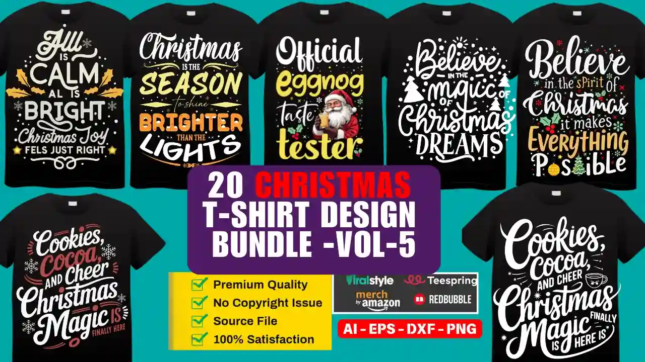 20 Christmas T-Shirt Design Bundle Vol-6