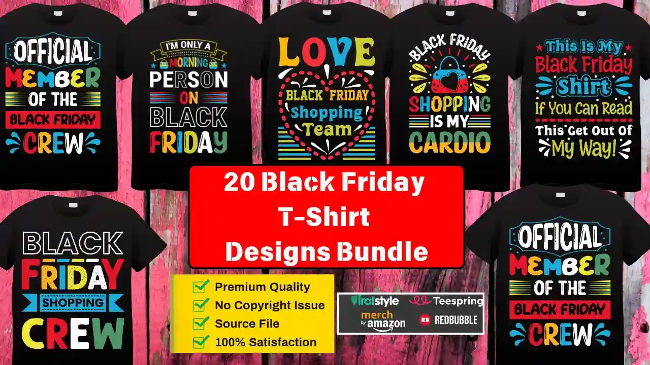 20 Black Friday T-Shirt Designs Bundle